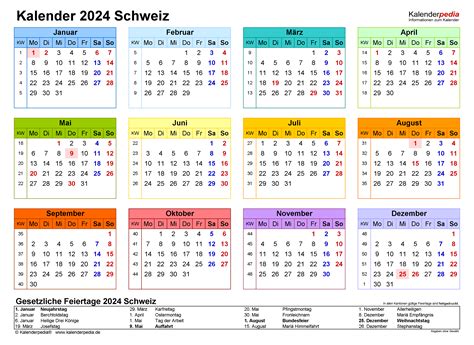 Hälfte Mit Kalenderwochen Und Feiertagen.